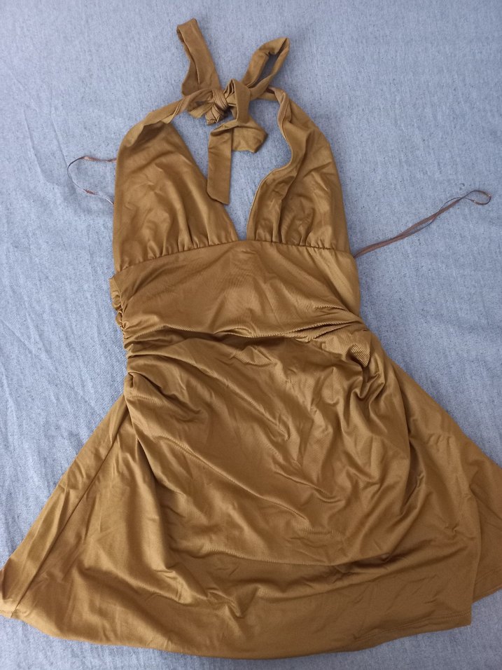 Camel Renkli Saten Görünümlü elbise