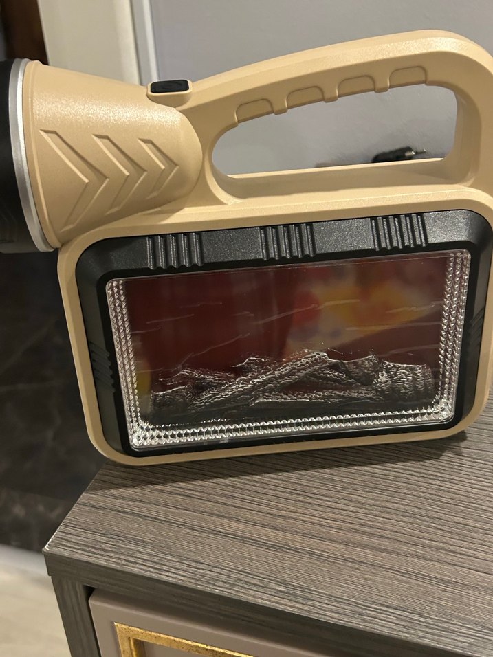 Camel renkte, taşınabilir ve tutma sapı bulunan projektör. Dikdörtgen lens alanı ile kolay taşınabilir.