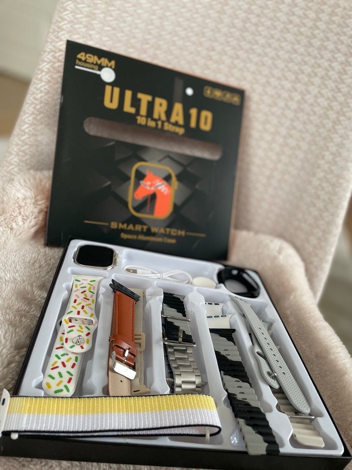 Camel renkli ULTRA10 akıllı saat, 49mm ekran ve çeşitli desenli, metal ve silikon kayış seçenekleri ile birlikte gelir.