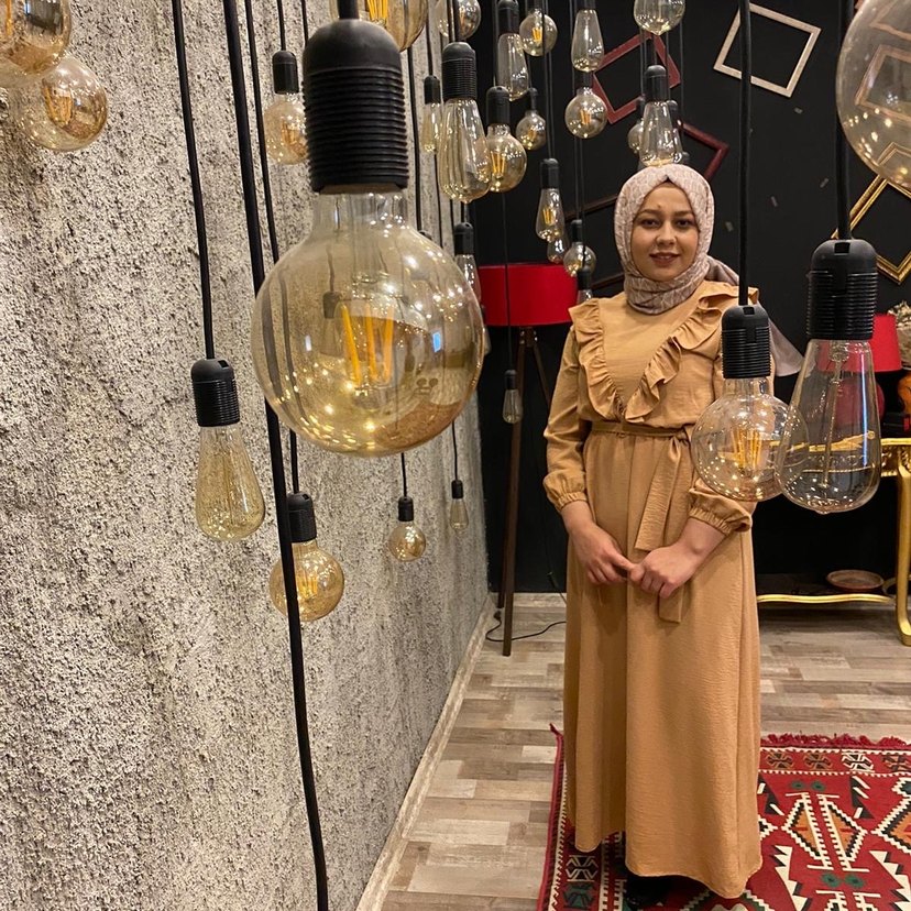 Camel Renkli Uzun Kol Drapeli Kadın Elbise