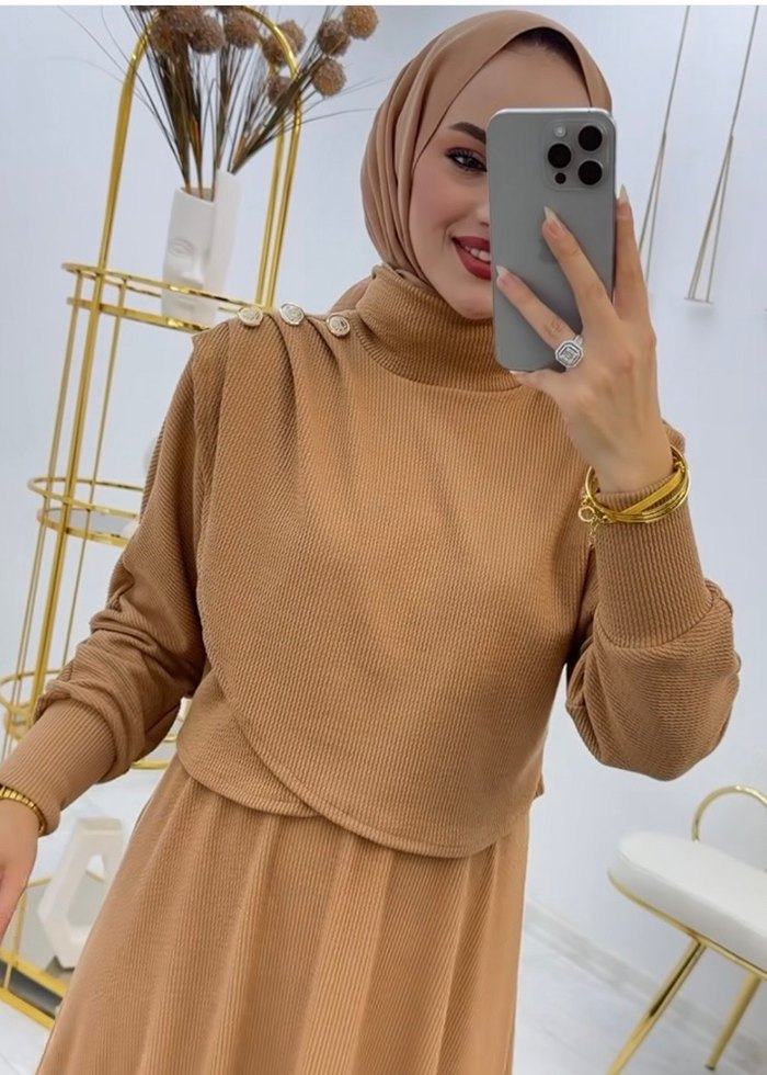Camel Renkli Uzun Triko takım
