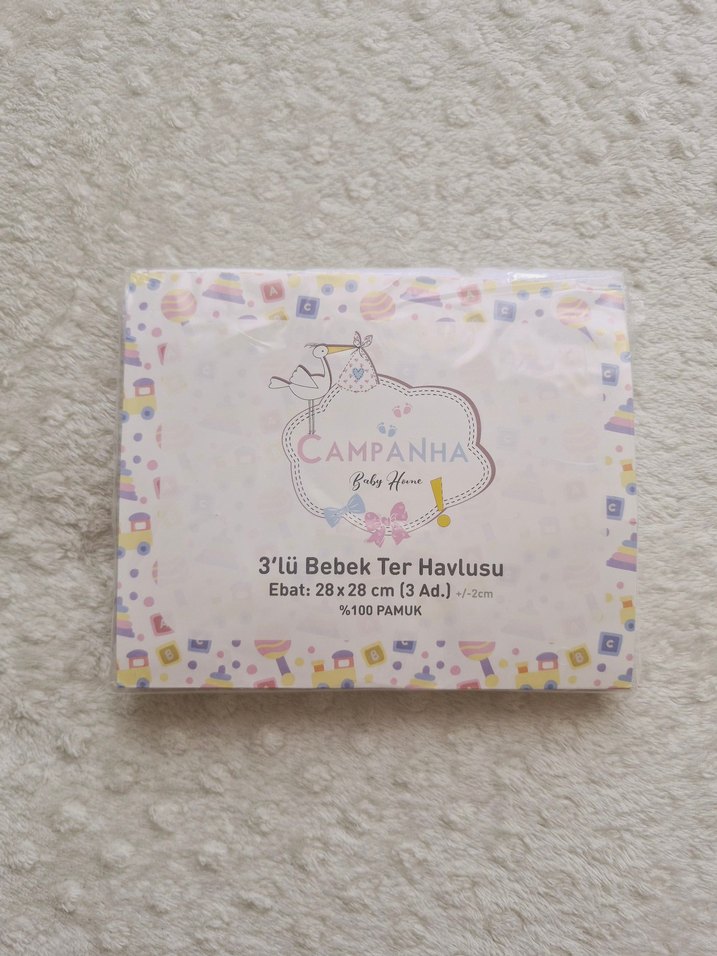 Campanha 3'lü Pamuk Bebek Ter Havlusu 28x28 cm