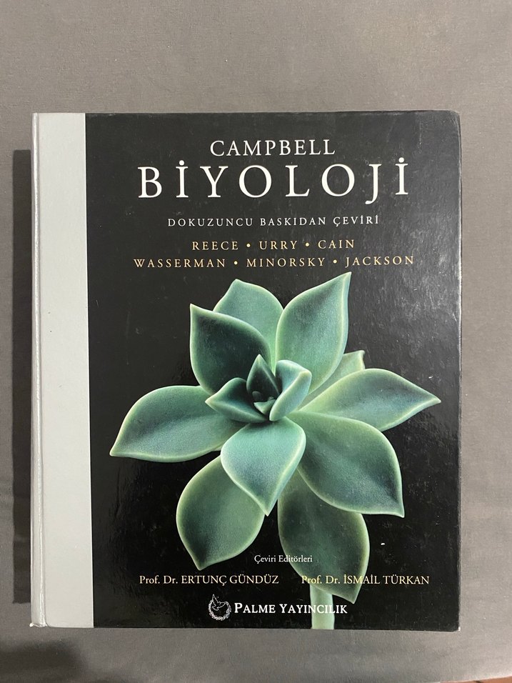Campbell Biyoloji dokuzuncu baskı, Prof. Dr. Ertunç Gündüz ve Prof. Dr. İsmail Türkan çevirisiyle Palme Yayıncılık'tan.