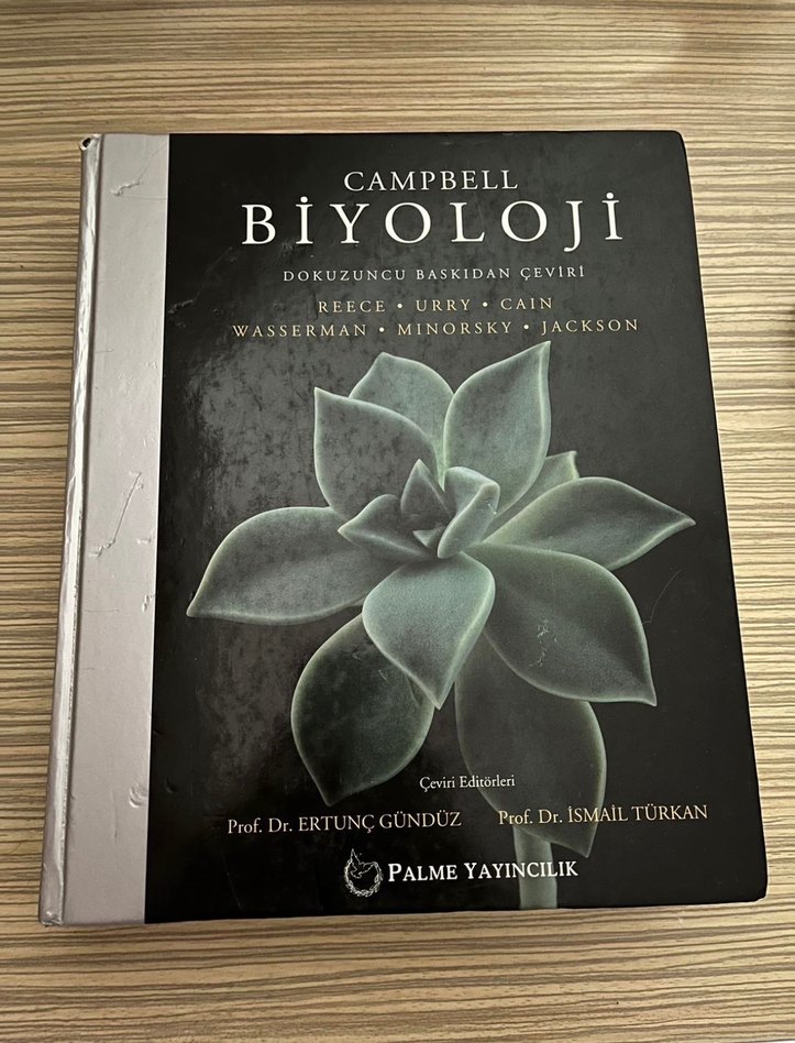 Campbell Biyoloji kitabının dokuzuncu baskısından çeviri, Prof. Dr. Ertunç Gündüz ve Prof. Dr. İsmail Torkan tarafından hazırlanmıştır. Palme Yayıncılık tarafından yayımlanmıştır. Hasarı bir tek fotoda görünen kadar.içinde çizili sayfa yok