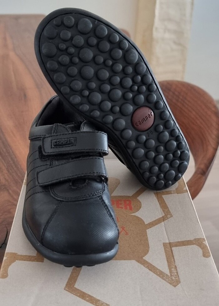 Siyah renkli, hiç kullanılmamış, hakiki deri çocuk ayakkabısı. Kutusunda gönderilecektir.