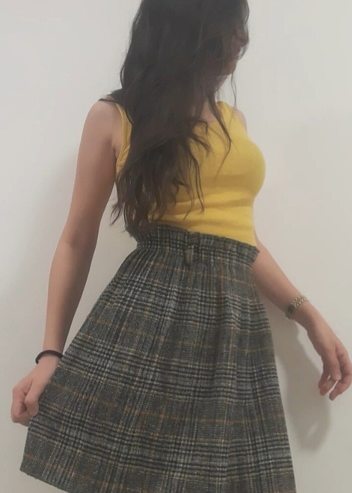 Kareli etek , Markası ambar , 1 kez giyildi , çoookk rahat , beli lastikli , gri siyah ve sari renkleri içeriyor