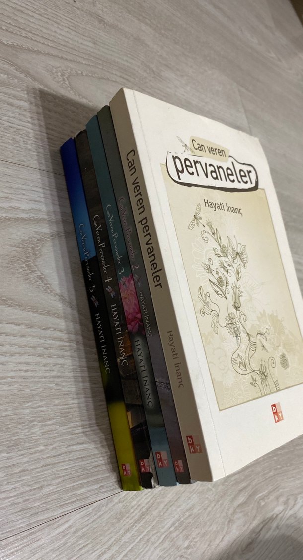 Hayati İnanç'ın 'Can Veren Pervaneler' adlı çok ciltli roman seti. Kitaplar sade kapak tasarımlarına sahip ve Maya tarafından yayımlanmıştır. 4.kapağı yırtıldı onun dışında diğerlerinde bir deforme yoktur.