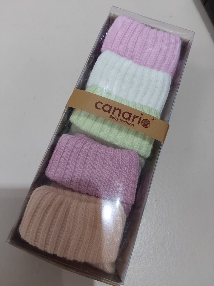 Canario markalı, pastel tonlarda, pamuklu, desensiz ve fitilli kız çocuk çorap seti. İçerisinde 5 adet bulunmaktadır Beden: 0-6 ay