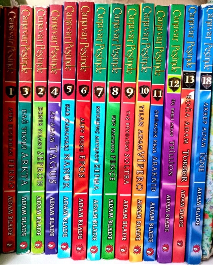 Adam Blade'in yazdığı "Canavar Peşinde" adlı 13 kitaplık renkli çocuk serisi, çeşitli canavar temalı maceraları anlatıyor. Ürünlerin 5 tanesinde resimlerde görüldüğü gibi sadece kapaklarının iç kısmında çizikleri mevcuttur, 1 tanesinin kapağı yırtıktır (ancak bantlanıp gönderilecektir) ve resimde görüldüğü gibi yıpranmıştır. Onun dışındaki diğer kitaplarda çizik,yırtık,yıpranma vs. yoktur. #İADEKABULEDİLMEMEKTEDİR. #AdamBlade #CanavarPeşinde