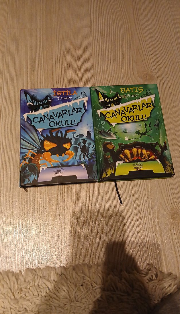 Çocuklar için 'Canavarlar Okulu' serisinden iki kitap: 'İstila' ve 'Batış' başlıklı canavar okuluyla ilgili eğlenceli hikayeler.