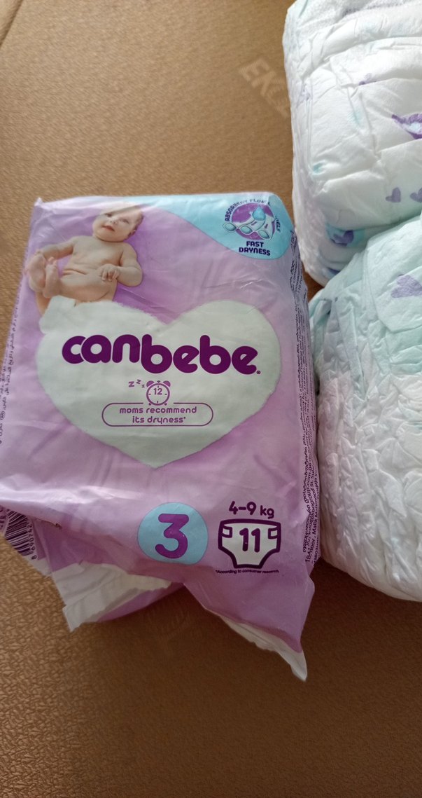 Canbebe 3 numara bebek bezleri, 4-9 kg bebekler için hızlı kuruluk ve rahatlık sağlar. Pakette 11 adet bulunur. Elimde 55 adet vardır