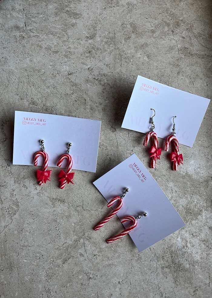 Yılbaşı için tasarlanmış el yapımı küpelerdir. Polimer kilden yapılmıştır. Adet fiyatıdır. Kurdeleli kancalı, kurdeleli toplu, kurdelesiz toplu olmak üzere üç farklı opsiyon mevcuttur. Hangisini istediğinizi lütfen belirtiniz.