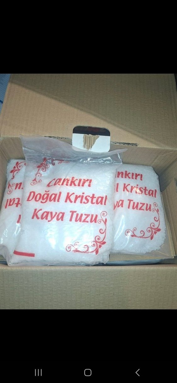 Çankırı'dan doğal kristal kaya tuzu, beyaz ve ince toz halinde, şeffaf paketlerde sunulmaktadır.