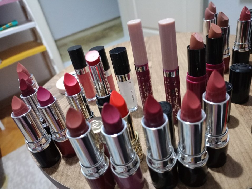 Canlı bordo tonlarda, parlak ve yumuşak dokulu farklı ruj çeşitleri.