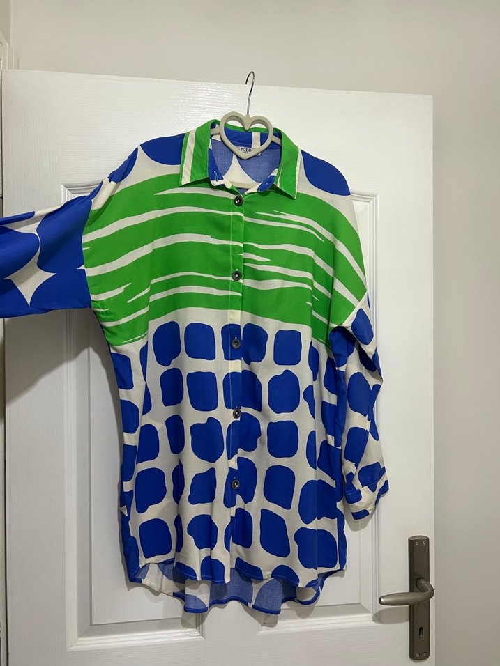 Dolabınızı renklendirecek, enerjik ve göz alıcı bir gömlek.Polo Live markasına ait bu oversize gömlek, rahat kesimi ve benzersiz deseniyle tüm dikkatleri üzerinize çekecek. Sadece 1 kez giyildi, yeni gibi çok iyi durumda. Hiçbir defosu, yırtığı veya lekesi bulunmamaktadır. Düğmeleri (koyu kahverengi/siyah) ve manşet detayı da (manşet düğmesi farklı ve şık duruyor) fotoğraflarda görüldüğü gibi tertemizdir.