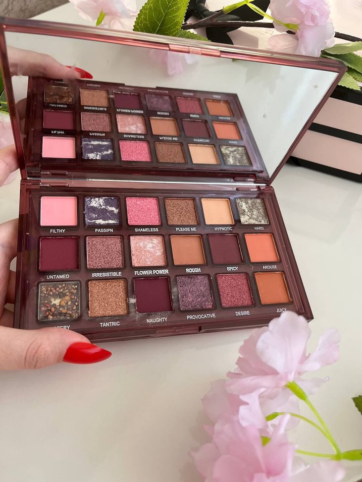 Bu far paleti, mat, ışıltılı ve simli canlı bordonun çeşitli koyu tonlarını içerir, cesur göz makyajları için uygundur.