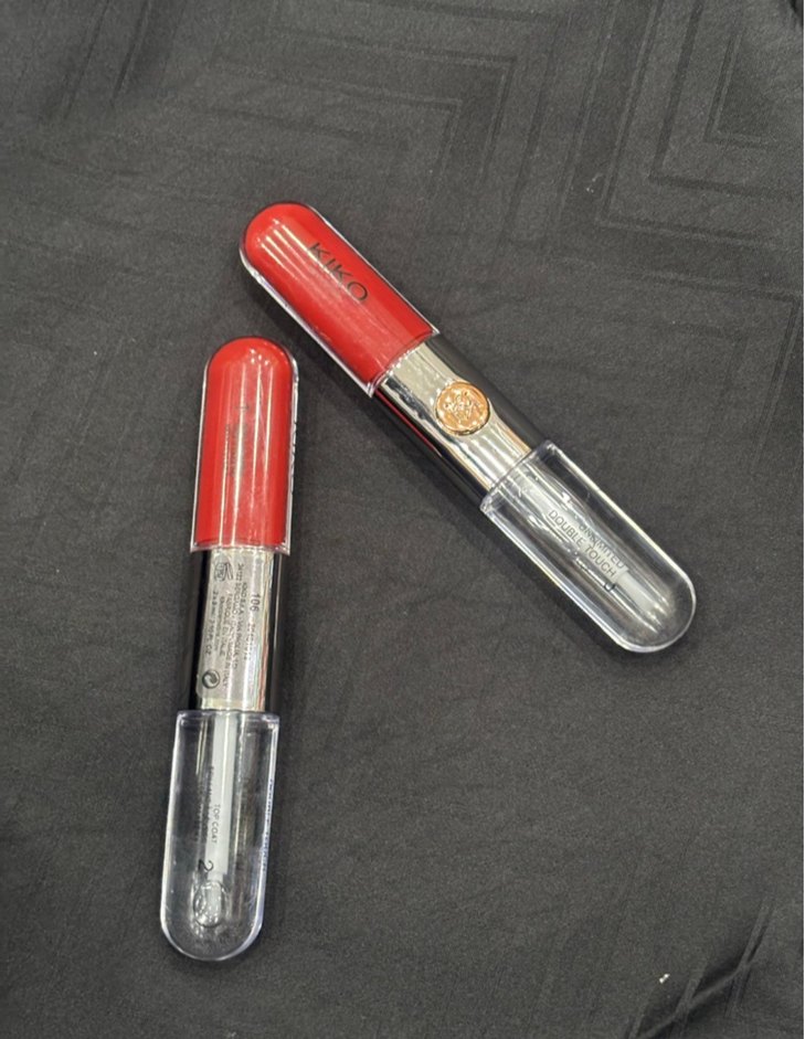 Parlak kırmızı renkte, şeffaf kapaklı şık gümüş tüpte ruj. Canlı renk katmak için ideal.