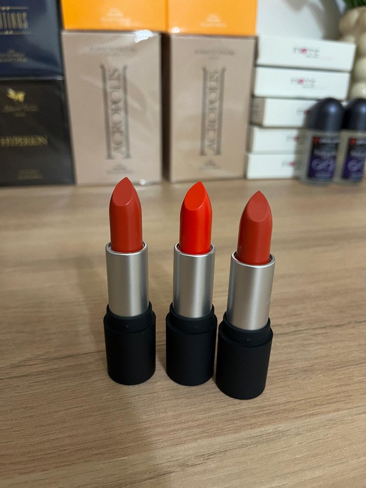 Canlı kırmızı tonlarda, zengin renk veren ve kolay sürülen ruj seti.