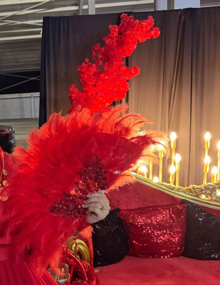 Canlı kırmızı renkte, kına aksesuarı yelpaze