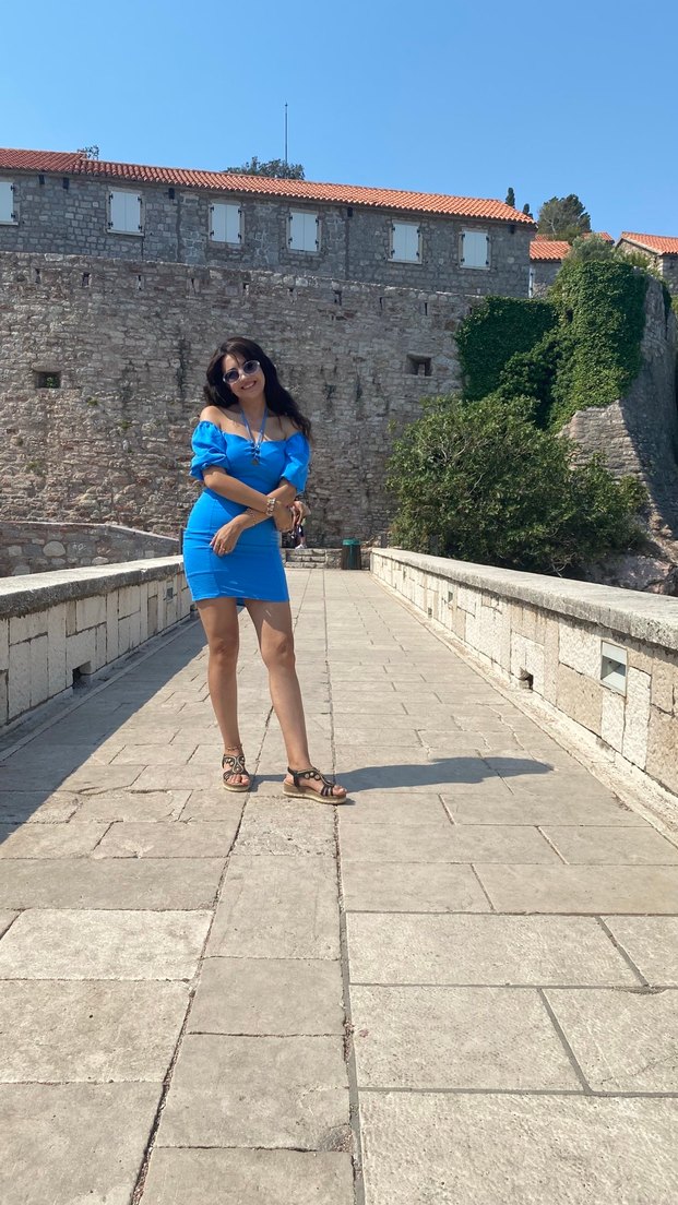 Parlak mavi desenli, straplez mini elbise. Romantik stil dış mekan sokak stiline uygun.Tek sefer giyildi