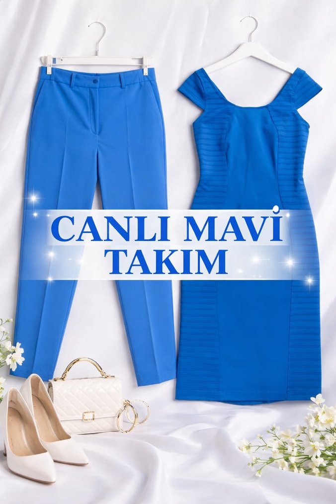 Canlı Mavi elbise ve pantolon