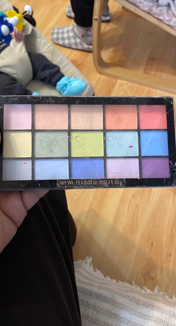 15 canlı ve açık renkten oluşan çoklu far paleti, toplam net ağırlığı 1.10g'dır.