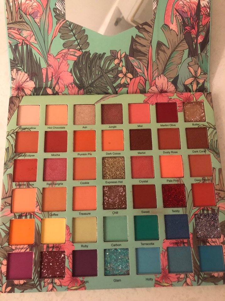 Mat ve simli dokularda, sıcak ve soğuk tonlardan oluşan canlı renkli göz farı paleti. Canlı renkleri ve tropikal desenli kutusuyla dikkat çekiyor.