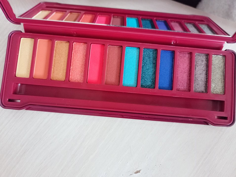 Canlı ve renkli tonlardan oluşan göz farı paleti, sıcak ve soğuk renklerle çeşitli makyajlar yapmaya uygundur.
