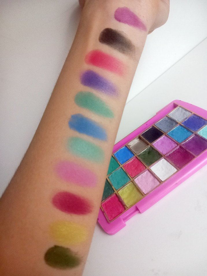 Canlı ve çok renkli tonlardan oluşan palet. doğum günü için kızıma almıştık renkli ve konsept makyaj sevenler için pigmentler çok güçlüdür ve kolay uçmaz.