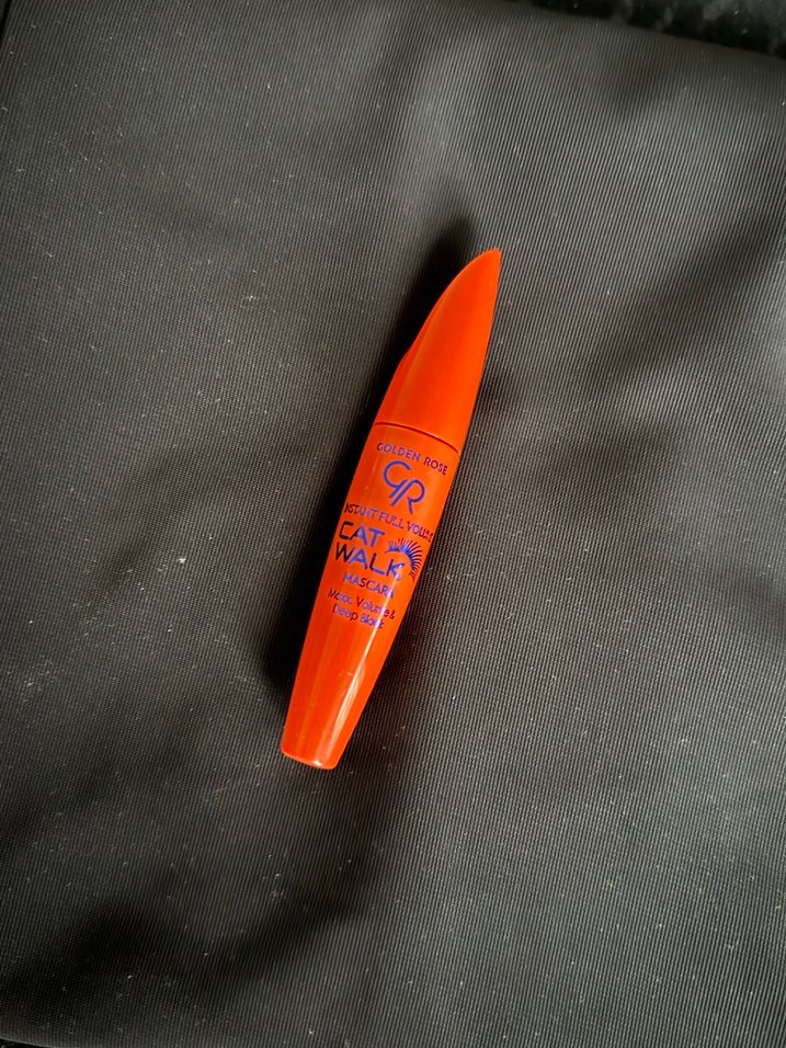 Golden Rose markasına ait canlı turuncu renkte, kirpikleri kaldırıp belirginleştiren kıvrık fırçalı maskara.