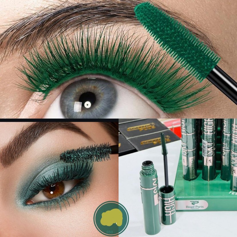 Canlı yeşil renkli maskara, kirpiklere yoğun renk ve hacim katarak etkileyici bir görünüm sağlar.
