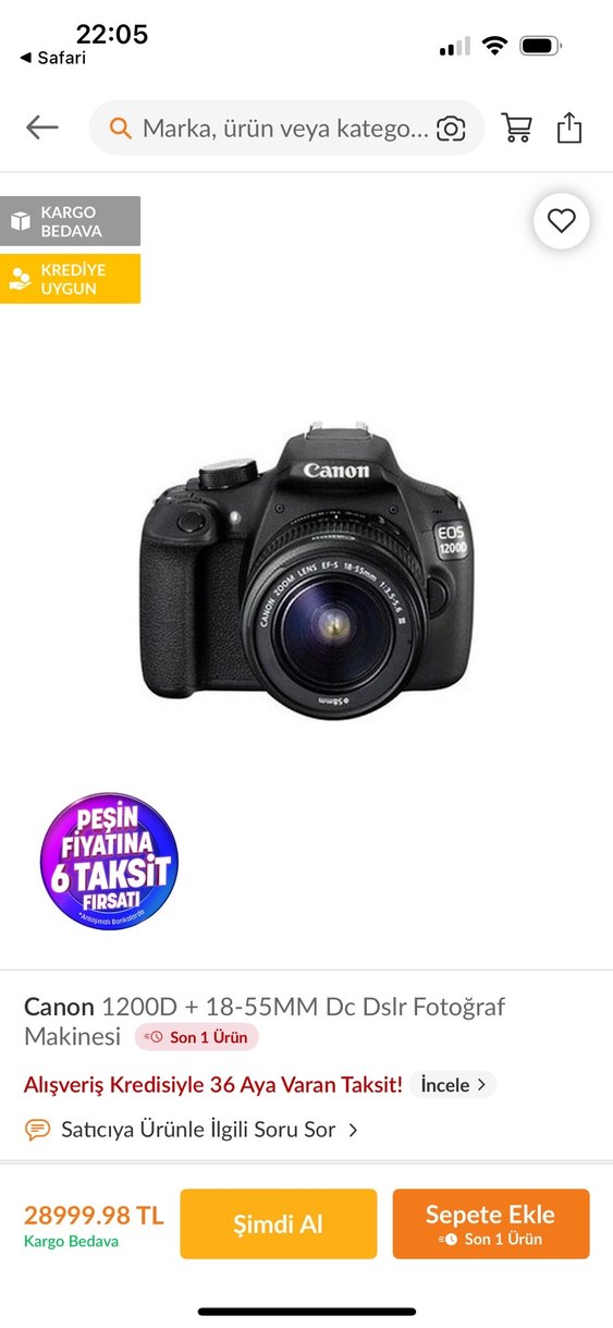 Canon 1200D 18-55MM DSLR Fotoğraf Makinesi Siyah