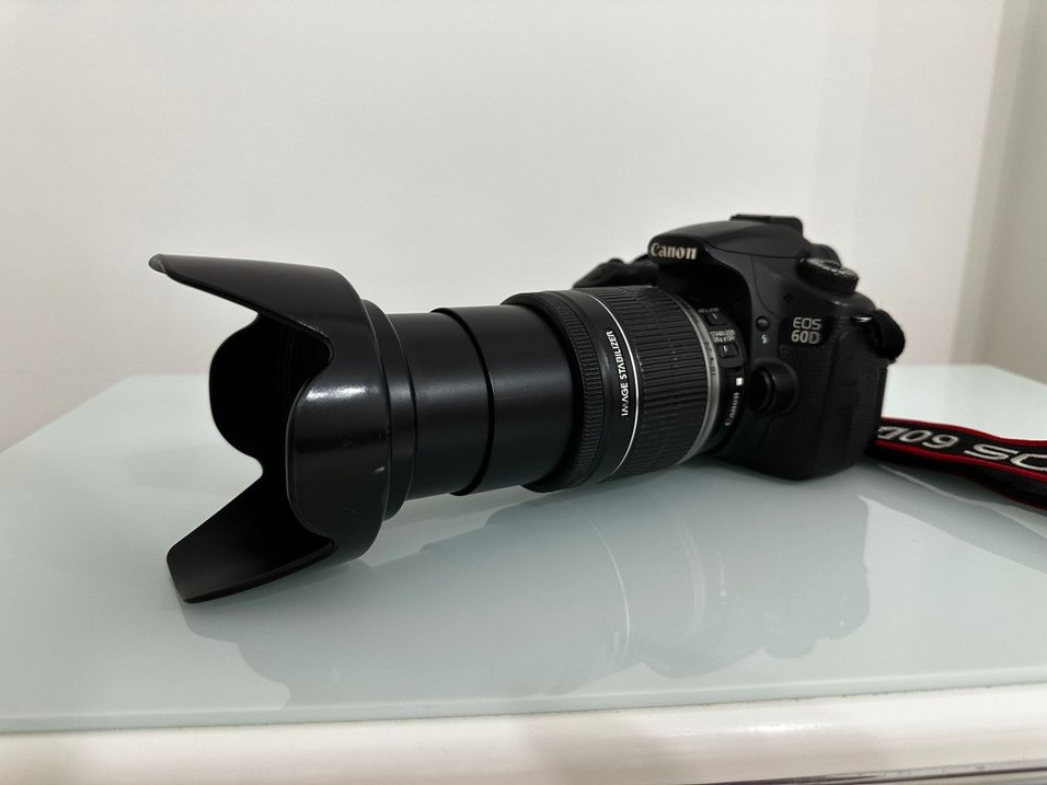 Canon EOS 600D dijital fotoğraf makinesi, net çekimler için görüntü sabitlemeli uzun zoom lens ve siyah gövdeye sahiptir.