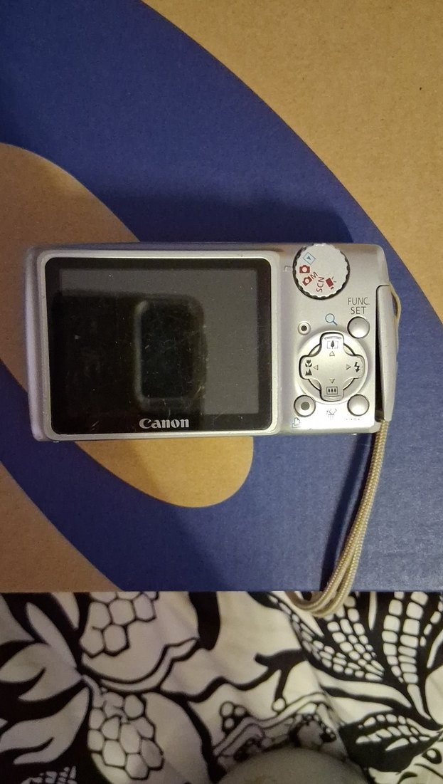 Canon gri renkli dijital kamera. Bu kamerayı dedemden yıllar önce almıştım üründe hafıza kartı yok hatta hiç kullanmadım o yüzden ürünün ekranın da ya da 2. attığım fotoğrafta olduğu gibi pil koyulan kapağın olduğu taraf kırık yani üründe az çok sıkıntı var o yüzden bunu farkında olarak alın. Onun dışında fotoğraf kısmında hafıza kartı olmadığı için çekemedim ama görüntü kalitesi diğer kameralarla ortalama aynı derecede. Şimdiden güle güle kullanmanız dileğiyle.
