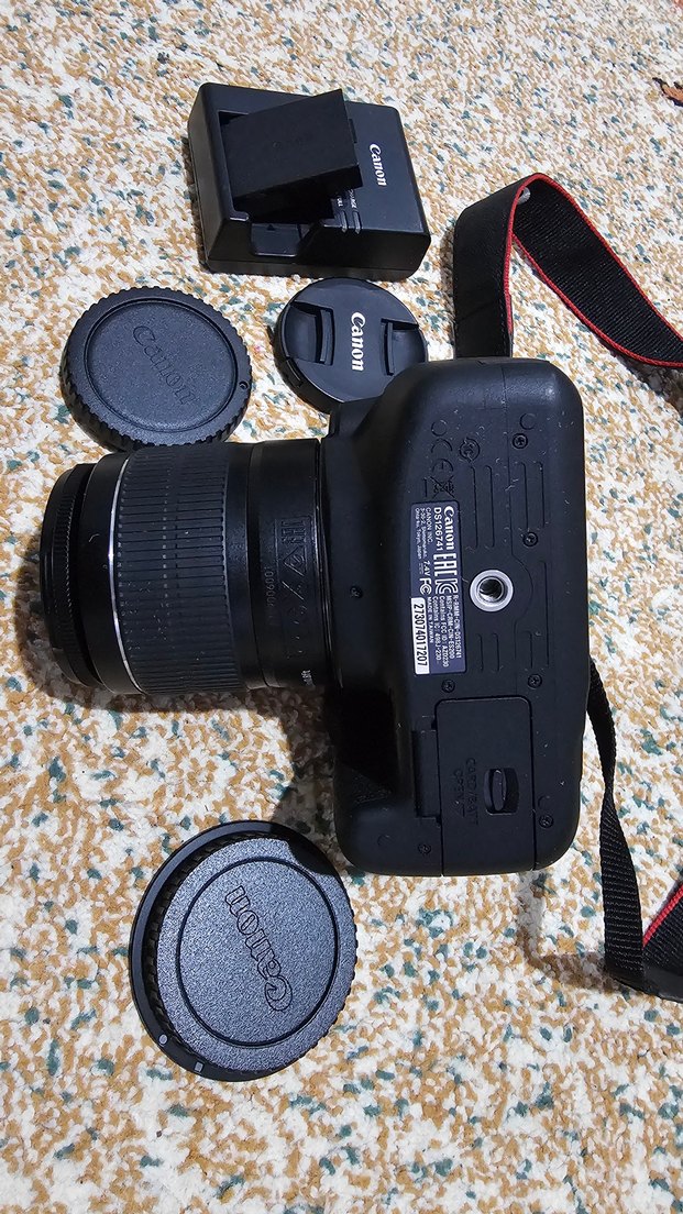 Canon siyah dijital fotoğraf makinesi, çıkarılabilir lens ve lens kapakları ile birlikte. Kompakt ve çok yönlü kullanım sağlar.
