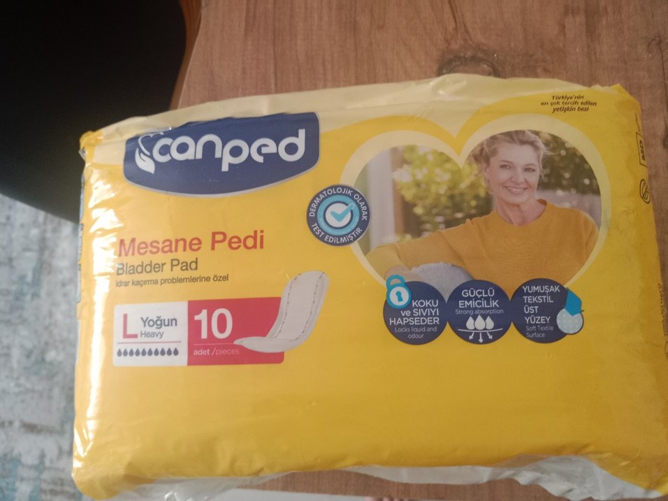Canped sarı hasta pedleri 10 adetlik pakette. Güçlü emiciliğe sahip, koku ve sıvıyı hapseder, dermatolojik olarak test edilmiştir.