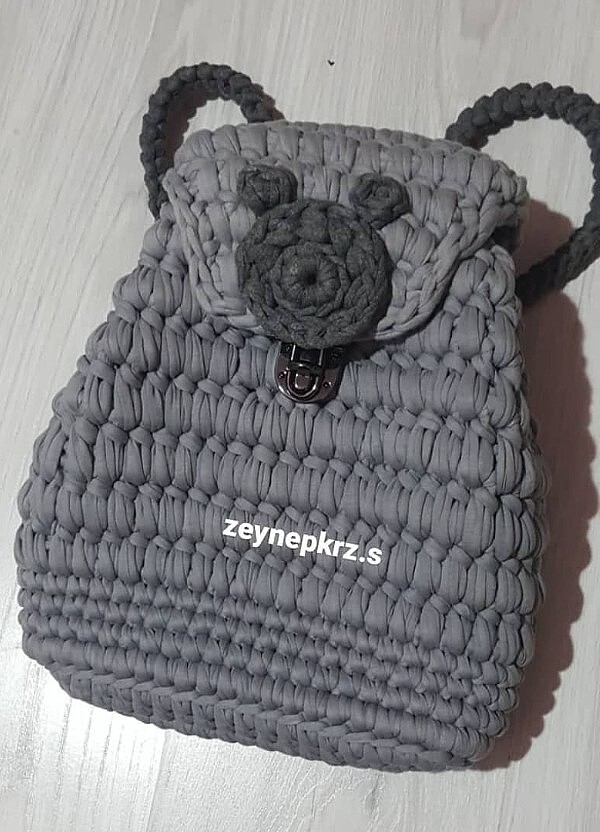 Örgü Çanta taş gri renk iç astarlı sırt çantası kullanımlı. Yeni