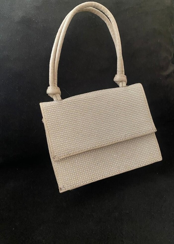 Krem rengi taşlı çanta. Bir-kac kez kullanıldı