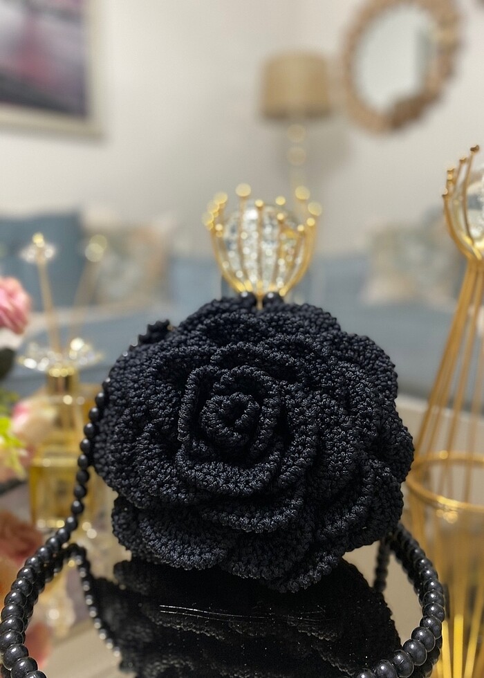Siyah gül motifli el işlemesi çanta istenilen renk yapılır