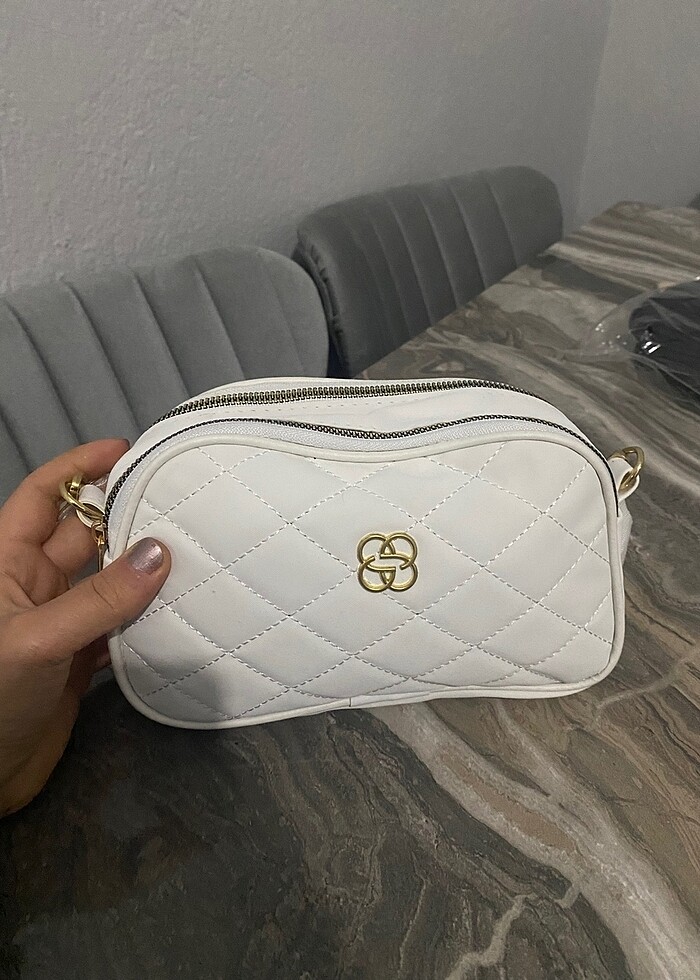 İki bölmeli beyaz kol çantası