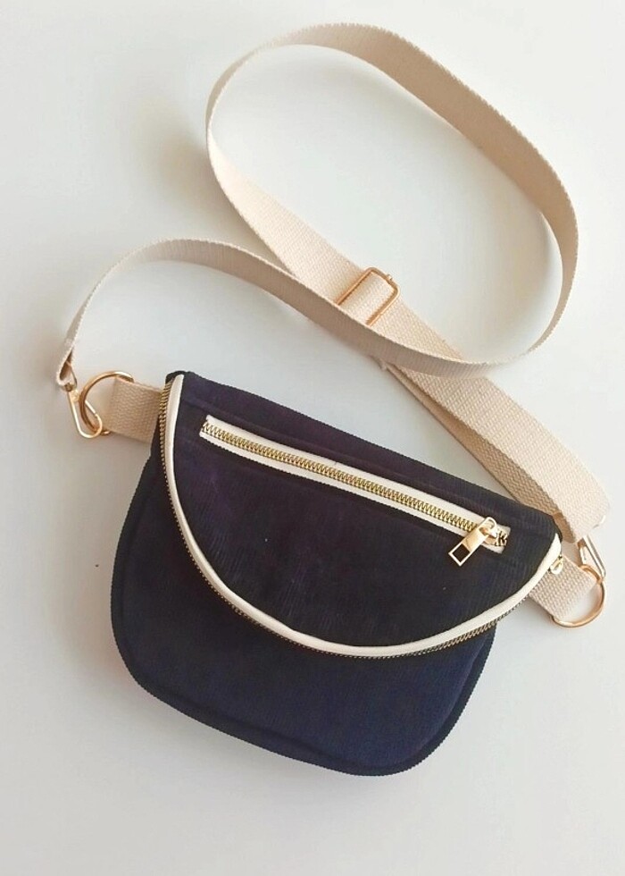 Çapraz çanta, fitilli kadife kumaş siyah renk