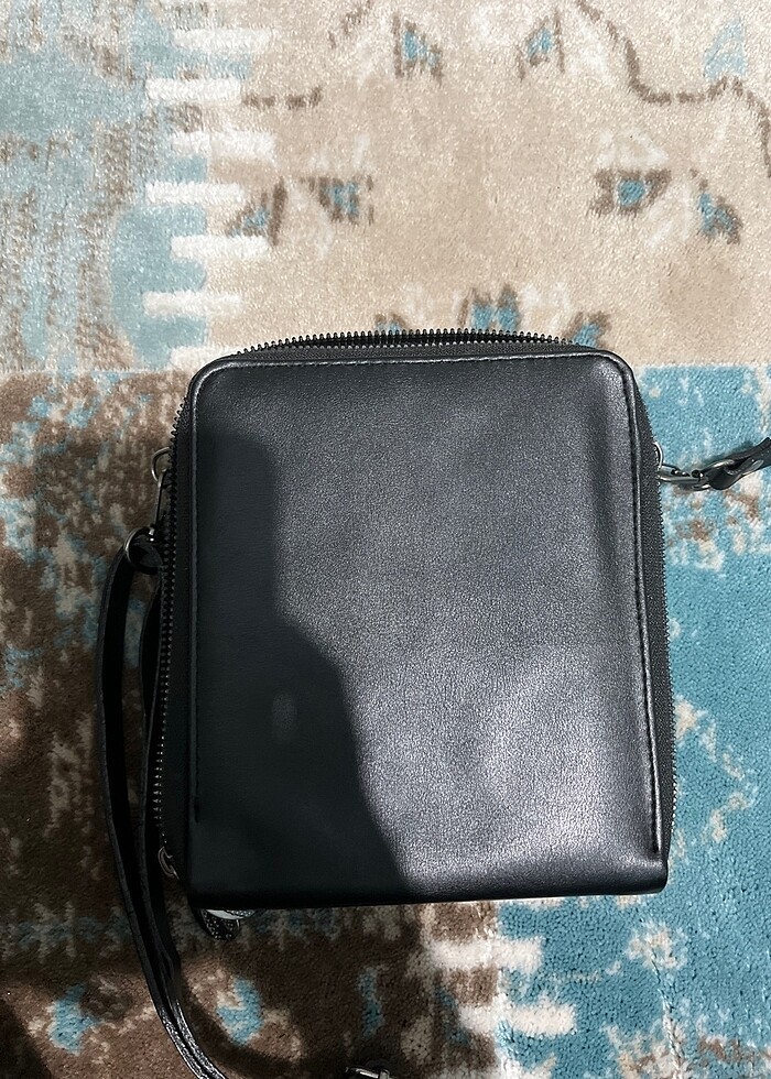 Siyah çapraz çanta. Çanta sapı deri olduğu için kırılmalar var yanında yedek canta sapı göndereceğim. Fermuarda beklemekten biraz renk değişimi var. Markasını bilmiyorum.