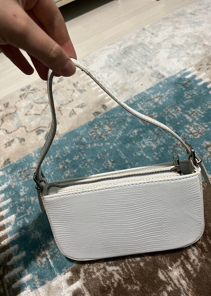 Housebags marka kol çantası beyaz renkli. Göründüğü gibi biraz sapında asınma var deri olduğu için. Birkaç kere kullanıldı.