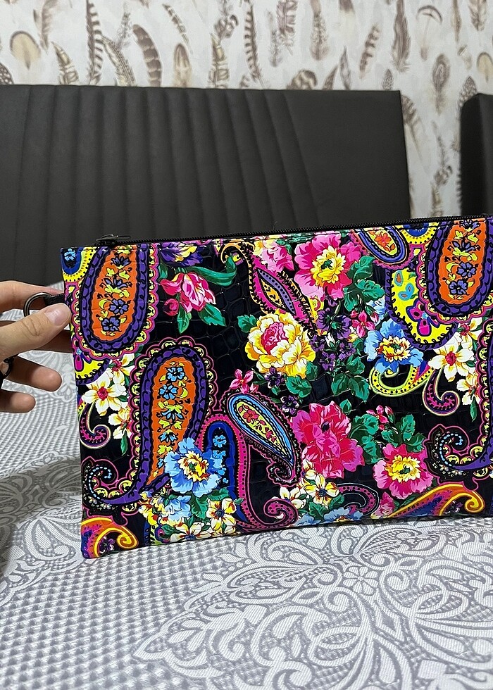 Çok tatlı desenleri olan renkli çanta çok güzel siyah kombinlerde baya şık durur