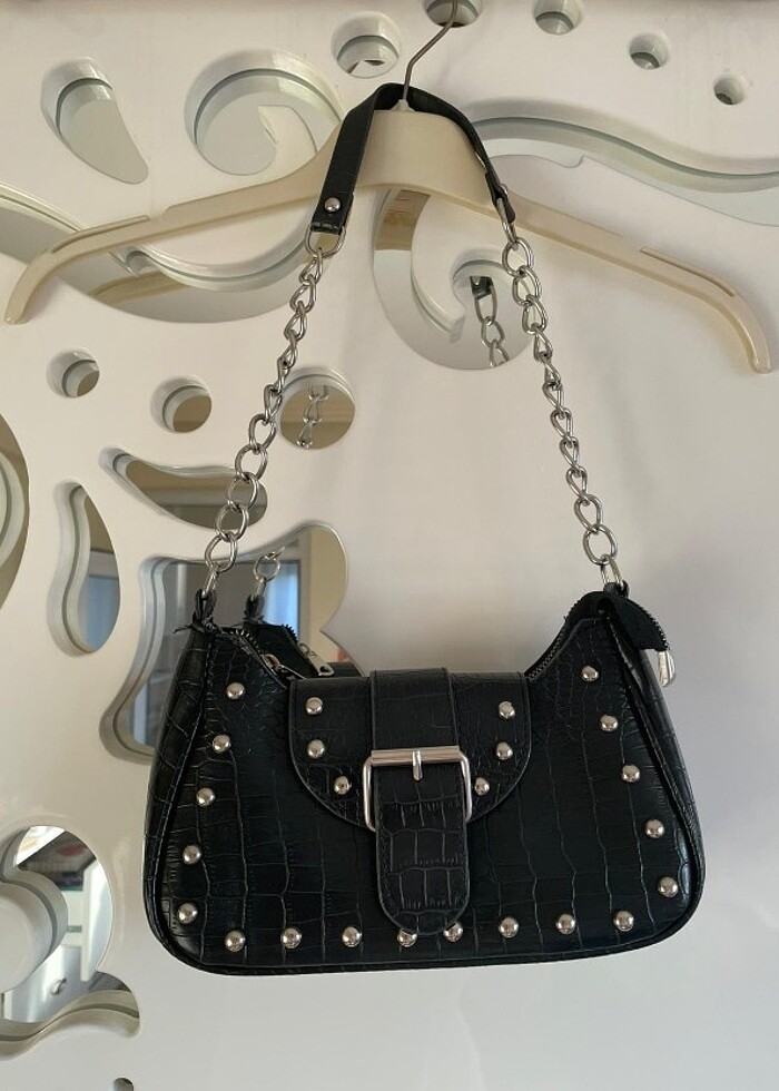 Siyah taş detaylı çanta