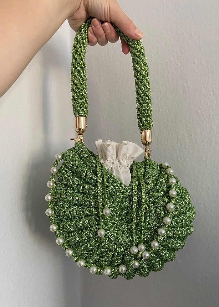 Parlamayı ve ön planda olmayı seven kadınlar için özel tasarlanmış incili ve parıltılı gold detaylı deniz kabuğu çanta ile isterseniz gece isterseniz gündüz en şık siz olacaksınız