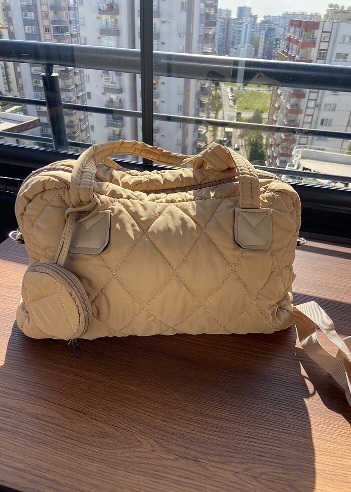 37*26*12 cm boyutunda,sadece son resimde göründüğü gibi iç astarında hafif yıpranma var,onun dışında hiçbir sorunu yok sağlam ve geniş çanta