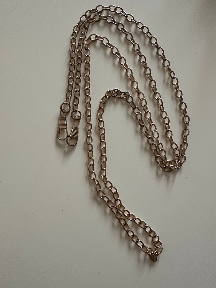 Gold renk zincir detaylı çanta sapı . Minimalist ve bohem tarzda, günlük kullanıma uygun sade tasarım. kullanılmış üründür