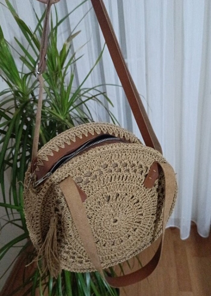 Moda çanta.kağıt ipten yuvarlak.çift kullanım
