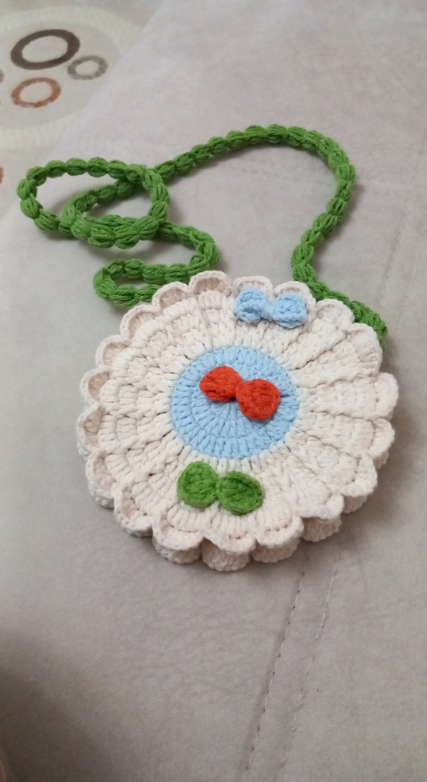 kız çocuk ları için el emeği örgü çanta tamamı pamuk iplik ten oluşuyor